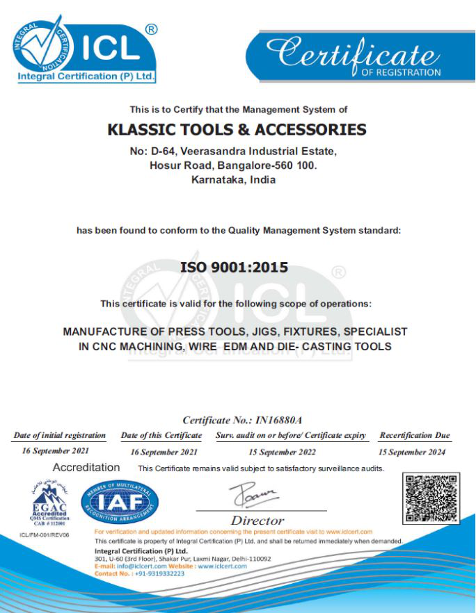 We are specialized in Manufacturing of Press Tools, Die Casting Tools, Moulds, Jigs & Fixtures and Precision Tools for Mechanical, Electrical & Electronics Components, Job works like CNC wire cut, EDM drilling, Sparking, Milling, Surface Grinding, Cylindrical Grinding Machined Components.